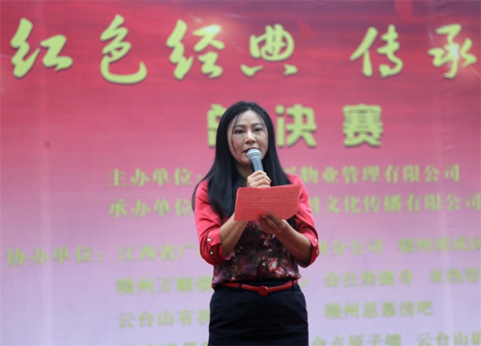 總決賽開始前,劉燕董事長(zhǎng)發(fā)表了熱情洋溢的致辭,首先向參加比賽的選手表示熱烈的祝賀!向前來(lái)指導(dǎo)的各位領(lǐng)導(dǎo)和來(lái)賓表示熱烈的歡迎!并指出:我們燕興物業(yè)舉辦紅色經(jīng)典朗讀大賽,就是要促進(jìn)紅色文化和愛(ài)國(guó)主義教育的傳播,增進(jìn)小區(qū)鄰里感情,推動(dòng)思想道德建設(shè),提高精神文明建設(shè)水平,進(jìn)一步培養(yǎng)熱愛(ài)祖國(guó)、熱愛(ài)黨、熱愛(ài)家鄉(xiāng)的意識(shí),增強(qiáng)社會(huì)責(zé)任感和使命感,讓紅色經(jīng)典滋潤(rùn)我們的心田,伴隨我們健康成長(zhǎng)。隨后,章江花園小區(qū)業(yè)主簡(jiǎn)國(guó)勤代表項(xiàng)目業(yè)主發(fā)言:燕興物業(yè)舉辦紅色經(jīng)典朗讀大賽,是活躍社區(qū)文化、讓紅色經(jīng)典唱響贛州的有益活動(dòng),祝愿活動(dòng)取得圓滿成功!祝賀燕興物業(yè)鑄就新的輝煌!
