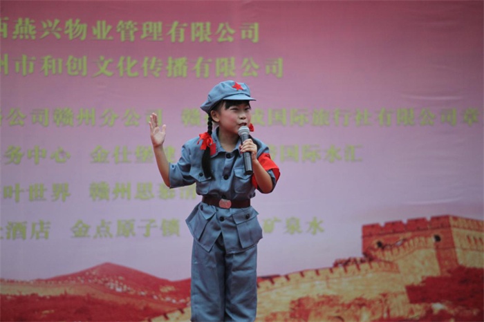 “中國(guó)共產(chǎn)黨帶給我們一個(gè)新的信仰,人民要獨(dú)立自主,民族要獨(dú)立解放......”總決賽在上猶縣御景山莊小區(qū)小朋友謝芷馨朗讀《紅色信仰》聲中拉開序幕。在隨后近兩個(gè)小時(shí)的時(shí)間里,參賽選手們?cè)谖枧_(tái)上盡情展示各自的才藝和激情,既有《我驕傲,我是中國(guó)人》《我的祖國(guó)》等耳熟能詳?shù)募t色經(jīng)典,也有《紅色的七月》《我愛(ài)你,中國(guó)》等抒發(fā)愛(ài)黨愛(ài)國(guó)愛(ài)家鄉(xiāng)的紅色經(jīng)典,還有《高原茶花》《七律長(zhǎng)征》等等。參賽選手們以飽滿的熱情、生動(dòng)的語(yǔ)言,抒發(fā)對(duì)黨和祖國(guó)的熱愛(ài),對(duì)英烈的懷念,對(duì)信仰的堅(jiān)守,一首首紅色經(jīng)典激起了現(xiàn)場(chǎng)觀眾的共鳴和對(duì)往昔崢嶸歲月的回憶。