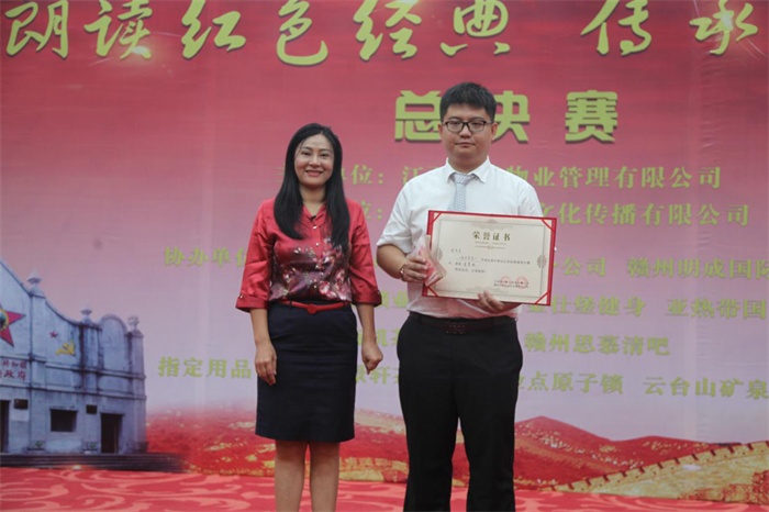 經(jīng)過(guò)激烈的比拼,章江花園小區(qū)業(yè)主周俊良憑借《高原茶花》的朗讀,榮獲本次比賽的一等獎(jiǎng),獲得1萬(wàn)元的現(xiàn)金獎(jiǎng)勵(lì);公園一號(hào)小區(qū)業(yè)主廖子茜小朋友和章江花園小區(qū)業(yè)主韓建榮獲本次比賽的二等獎(jiǎng),分別獲得2千元的現(xiàn)金獎(jiǎng)勵(lì);糧食城小區(qū)業(yè)主危筱萍與郝建光、糧食城小區(qū)業(yè)主劉忠英和吉安市廬陵一品小區(qū)業(yè)主周小鴻榮獲本次比賽的三等獎(jiǎng),分別獲得500元的現(xiàn)金獎(jiǎng)勵(lì)。