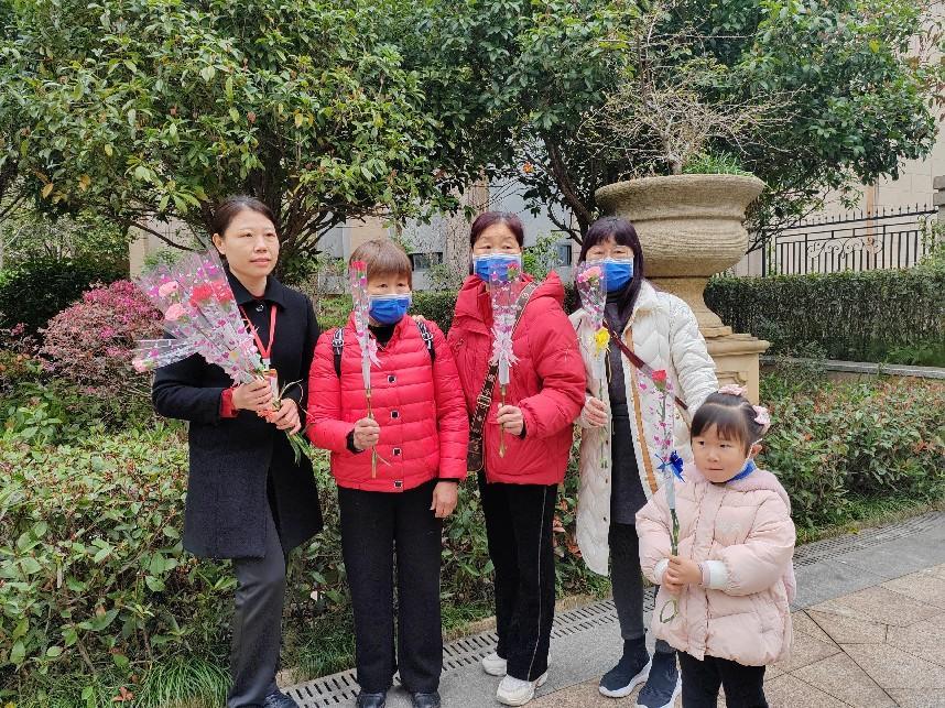 帝景豪園小區舉辦“寵愛女神”便民服務活動,給小區女性業主送鮮花、提供免費沖洗地墊、免費磨刀服務。