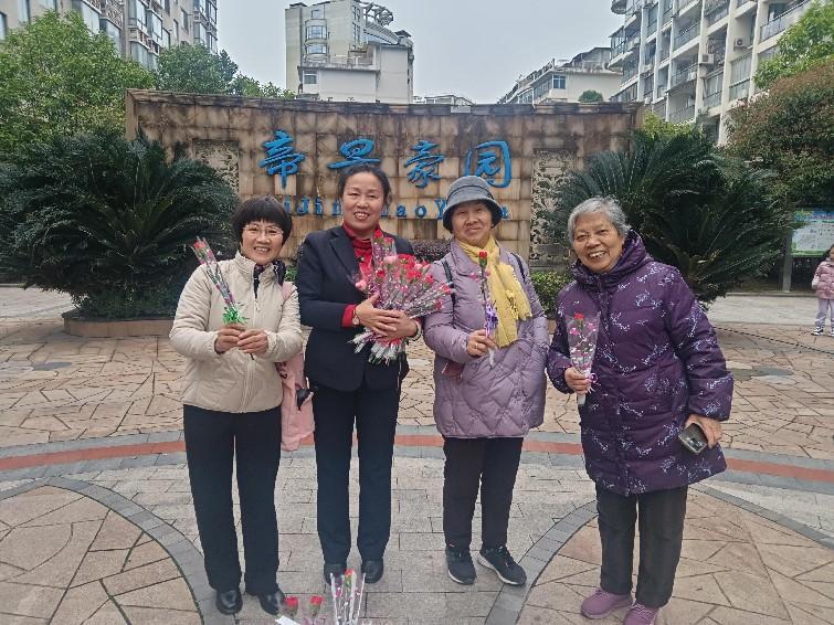 公務員小區和怡景嘉苑小區開展了為小區女性業主送鮮花,口腔義診、套圈游戲等活動。