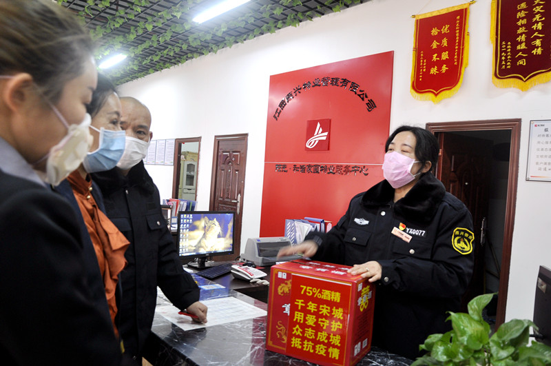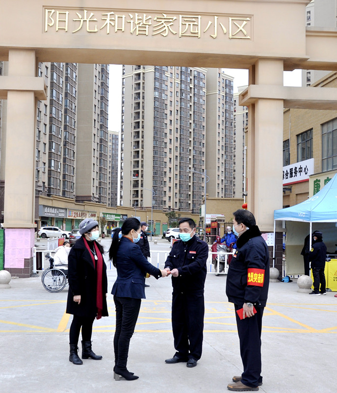 第四黨支部書記肖忠良配帶黨徽亮出身份,鼓勵(lì)業(yè)主、員工戰(zhàn)勝恐慌,對(duì)特殊人群上門勸導(dǎo)居家隔離,忇調(diào)配合使這個(gè)萬人小區(qū)呈現(xiàn)平和安寧的良好氛圍。共產(chǎn)黨員李華標(biāo)為做好同伴的防護(hù)安全,多方尋找急需的口罩,體溫槍、消毒水、帳篷等緊缺物資。于是出現(xiàn)了和諧家園的業(yè)主、員工紛紛把自己家里購買的口罩、酒精帶給物業(yè)使用,把家里的綠植放到物管處美化環(huán)境的一幕幕感人場面。