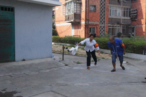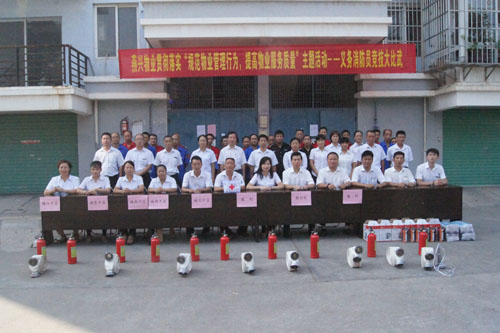 為提高燕興物業義務消防員的滅火救援實戰能力, 8月28日上午9時,由燕興物業保衛部組織的義務消防員大比武活動在管轄區域老地委大院內舉行。參賽人員由城東、城南、城西、城北、贛縣五個片區推選出的30名優秀人員入圍參加。