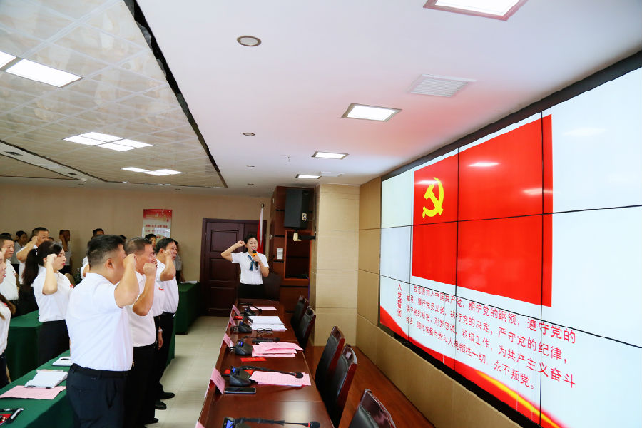 黨委書記、董事長劉燕同志帶領(lǐng)全體與會人員重溫入黨誓詞