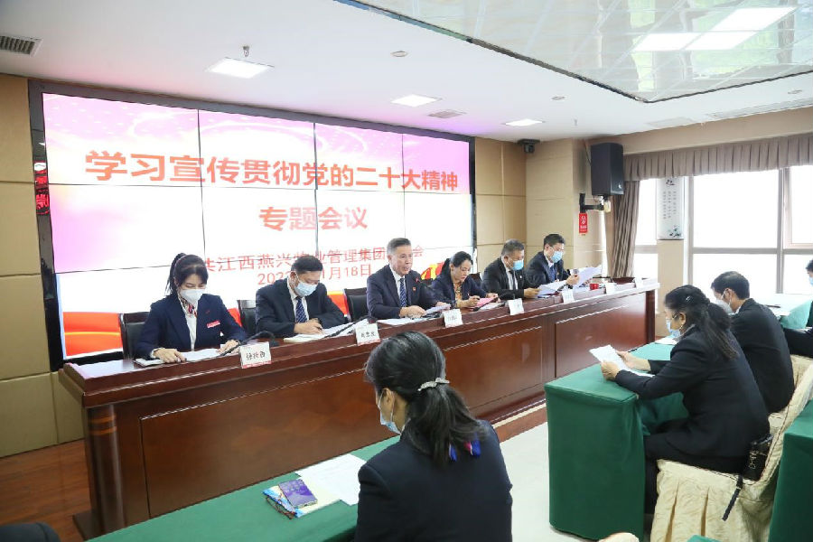 11月18日下午,燕興集團黨委召開學習宣傳貫徹黨的二十大精神專題會議。集團黨委書記、副總裁劉南斗主持會議,集團黨委委員、公司領導、贛州中心城區各支部黨員、入黨積極分子、各項目管理人員及公司各職能部門負責人參加。