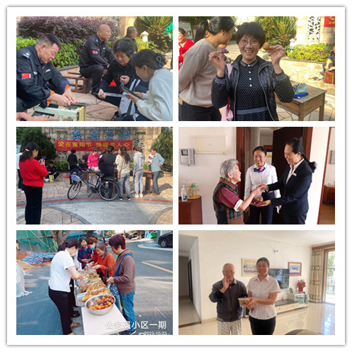 10月23日上午,公務(wù)員小區(qū)、帝景豪園小區(qū)開展“愛在重陽節(jié) 情暖老人心”重陽節(jié)活動,活動中邀請業(yè)主們品嘗美食芋包子、勺子米果、蔥條等,還開展了免費的磨刀、理發(fā)等便民服務(wù)活動。針對行動不便的老人,物業(yè)中心的工作人員上門給他們送愛心米果,讓老人感受到物業(yè)節(jié)日的關(guān)懷和溫暖。
